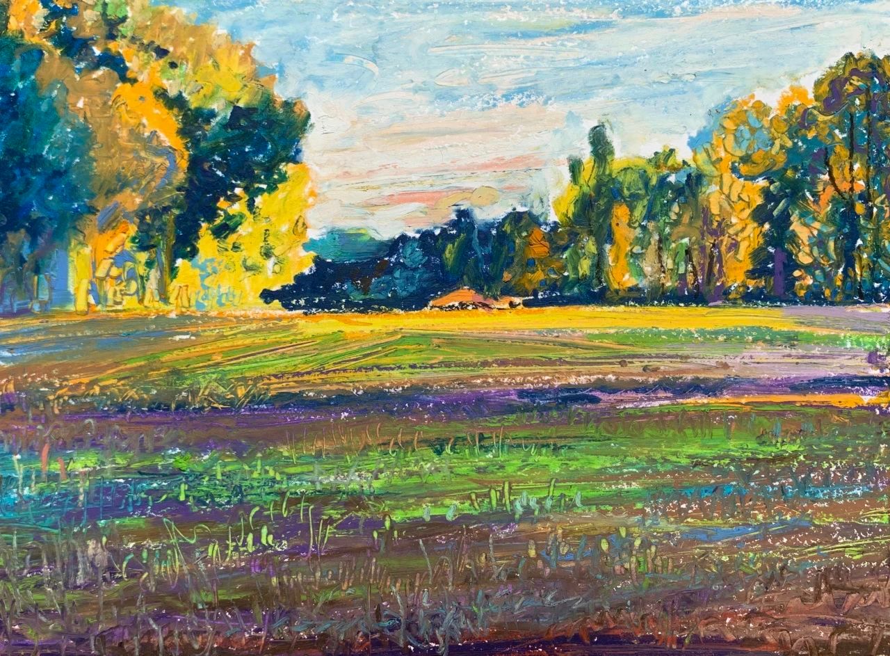 又是一个晴好的天气。我从家门出来,一直走到了田野里,一排树木从草地上延伸到山坡后面,山坡后面有什么我并不知道,云也从坡后面冒出来,朝头顶的天空蔓延开来,云朵就好像雪山一样耸立起来,看上去既柔软又十分洁白,让我很想爬到那上面去。山坡上云的暗影缓缓移动,等我走到山坡上,我看见一条河流在平川处划出一条亮白的细线。仿佛土地裂开了,露出了下面的一面镜子。这镜子从未将我的面孔映射出来,它只映照天空里的一切。山坡下有一群村舍,红褐各色房顶下白墙突出,络绎不绝在草地上,被树林围绕着,周围山坡黄绿相间,单纯而鲜明。这土地是如此肥沃,好像充满了生长的欲望。我走在田野上,麦天的金黄色铺展开来,又很快地收割了,露出土地的颜色,很快又被新的绿色所覆盖。而树木从夏天的浓绿到秋天的红绿褐黄,诉说着自然重复变化的绚烂之美。我曾经在这片麦田边上傻傻地站着,像守望者看着金色的麦海,这样我的站姿就有了稻草人一样的意味。