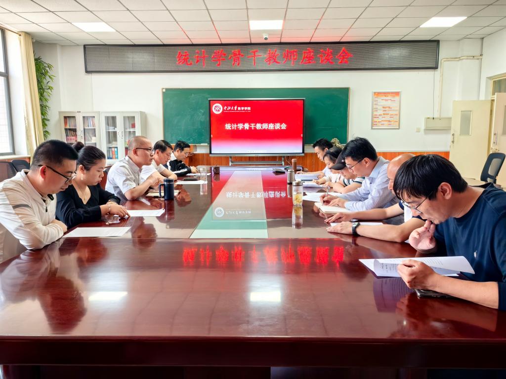 举办了统计学骨干教师座谈会暨统计学硕士研究生培养方案论证会。院党委书记薛亚奎教授、副院长吴森林教授、统计学科首席学科带头人杨明、学科带头人侯强、概率统计系主任张峰、计算科学系主任薛震等十余位统计学骨干教师参加了此次会议。