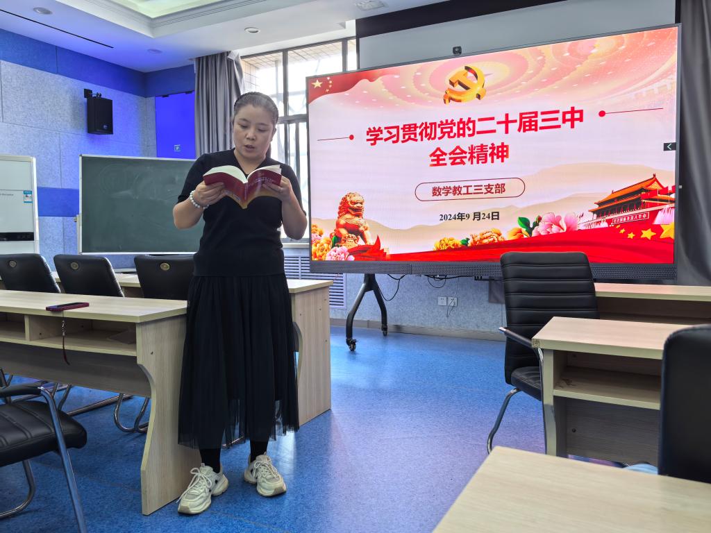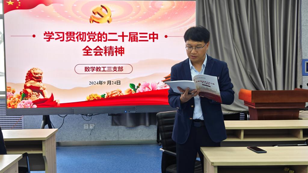 9月24日下午16:30,数学教工第三党支部全体党员在9号楼924会议室开展本学期第一次党支部会议,深入传达贯彻落实党的二十届三中全会精神。