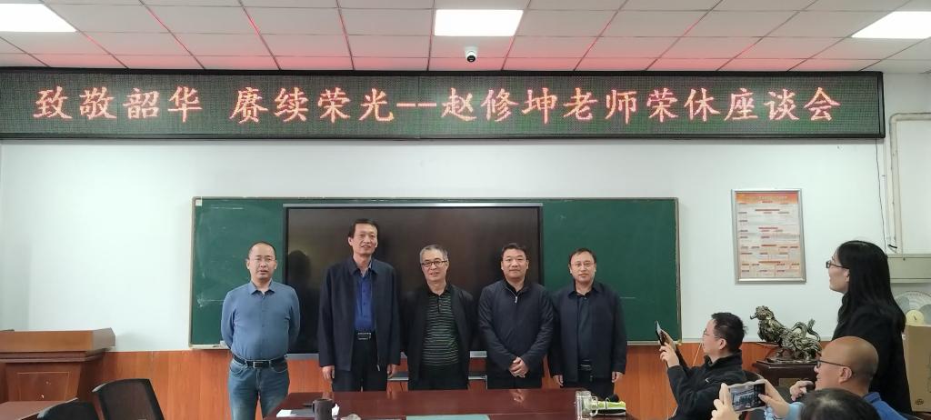 赵修坤老师荣休仪式在学院会议室举行。院领导班子成员、各系主任和教师代表参加了仪式。仪式由院党委书记薛亚奎同志主持。