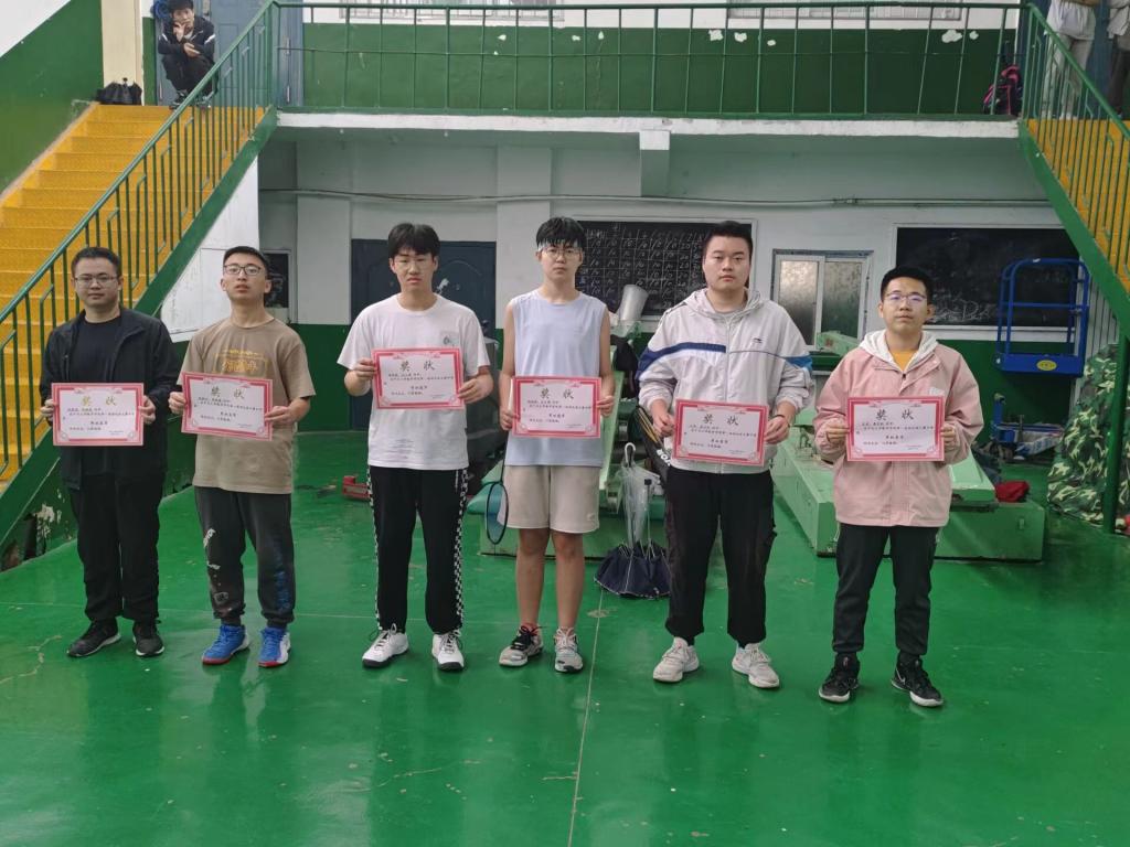 比赛结束后,学院为羽毛球队员们举行了颁奖典礼,典礼开始,由主持人先后宣布个人奖项和团队奖项的获奖名单。随后老师们为男子单打、女子单打、男子双打、女子双打、的冠亚季军进行颁奖并合影留念。获奖选手脸上洋溢着自信喜悦的笑容,观众也衷心地为他们鼓掌,赞他们的突出表现,更赞他们比赛过程中体现的体育精神。从初赛到决赛,所有参赛选手在赛场上你追我赶、不甘落后,展现出勇攀高峰的奋斗精神,书写着青春的力量,为观众呈现了一场场激烈精彩的比赛。