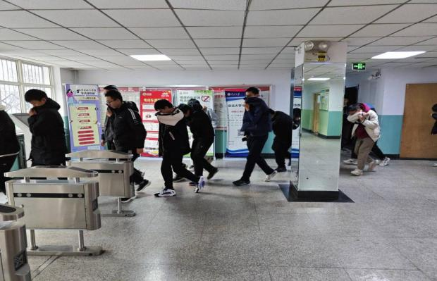 为了实施好本次演练,我们制定了详细的消防疏散演练预案,对各班逃离的路线及每层楼的工作人员作了明确的规定。演练开始前,全体参演人员各就各位,随着哨声响起,消防演练正式拉开了序幕。各楼层负责人员参照演练应急预案,迅速组织同学紧急疏散,利用逃生通道及时逃离火灾现场,整个过程有条不紊的进行。同学们弯腰低姿,拿袖子或手捂住口鼻,有序进行撤离,安全快速地到达了文韬一北楼门口。