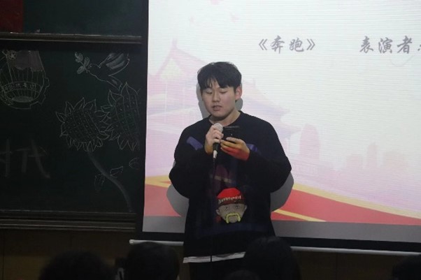 团委的工作人员与各团支部答辩班级代表都早早到达了现场,开始了紧张有序的赛前准备工作。下午四点,比赛准时开始。伴随着参会人员合唱的中国共青团团歌《光荣啊,中国共青团》,本次比赛拉开帷幕。在主持人介绍了本次比赛的评分细则后,答辩正式开始。