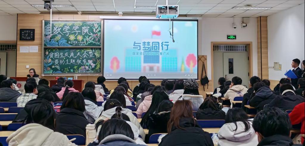 接下来,为使广大同学深入了解本校的勤工助学项目以及国家助学贷款有关政策,帮助困难学生顺利完成学业,以集体观看宣传视频的形式,将资助教育融入其中,加强了同学们的感恩意识,助力学生们实现自我价值。