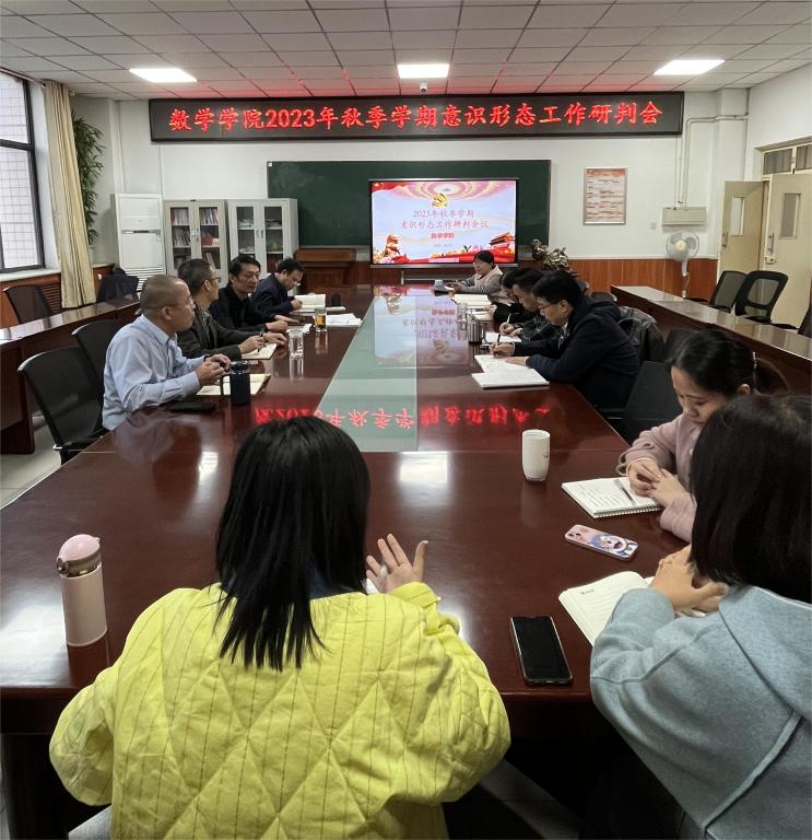 20231031午,院在9号楼六层会议室召开2023年秋季学期意识形态工作研判会。会议由院党委书记薛亚奎主持,院领导班子成员、院党委委员、各支部书记系主任、辅导员参加了此次会议。