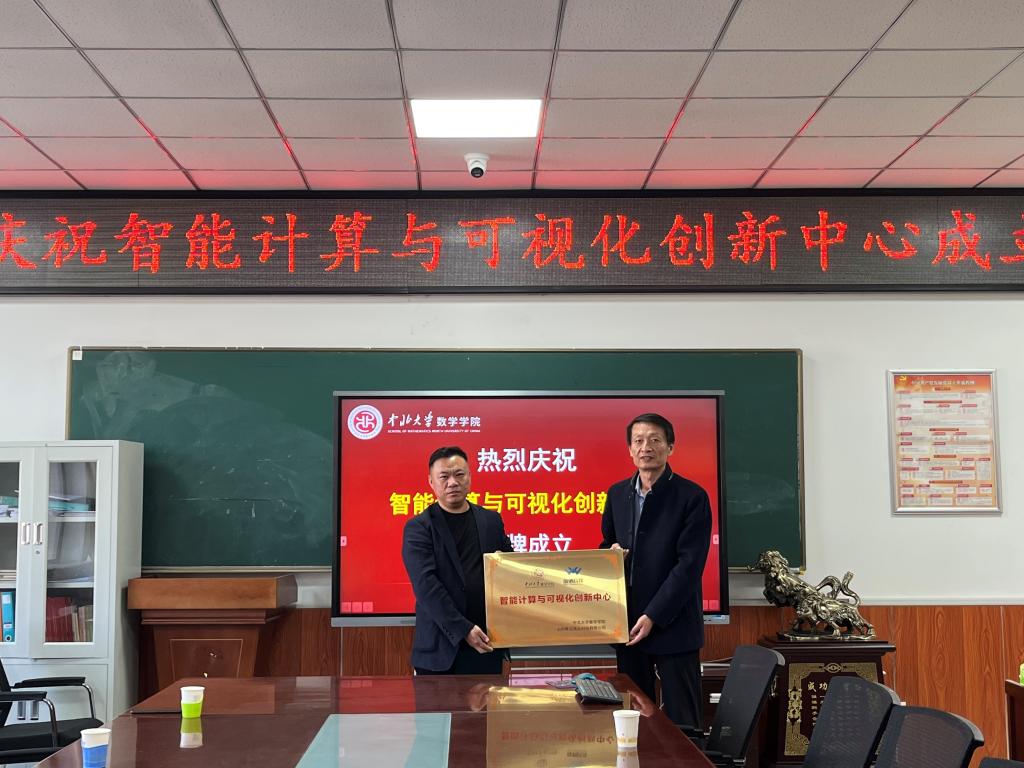 2023年10月31日上午,智能计算与可视化创新中心在p站 六层会议室揭牌成立。p站 党委书记薛亚奎、教学副院长王鹏、科研副院长吴森林、计算科学系主任薛震、概率统计系主任张峰、数学与应用数学系主任姚林红,以及山西维信致远科技有限公司董事长郭志强等共同参加此次揭牌仪式。
